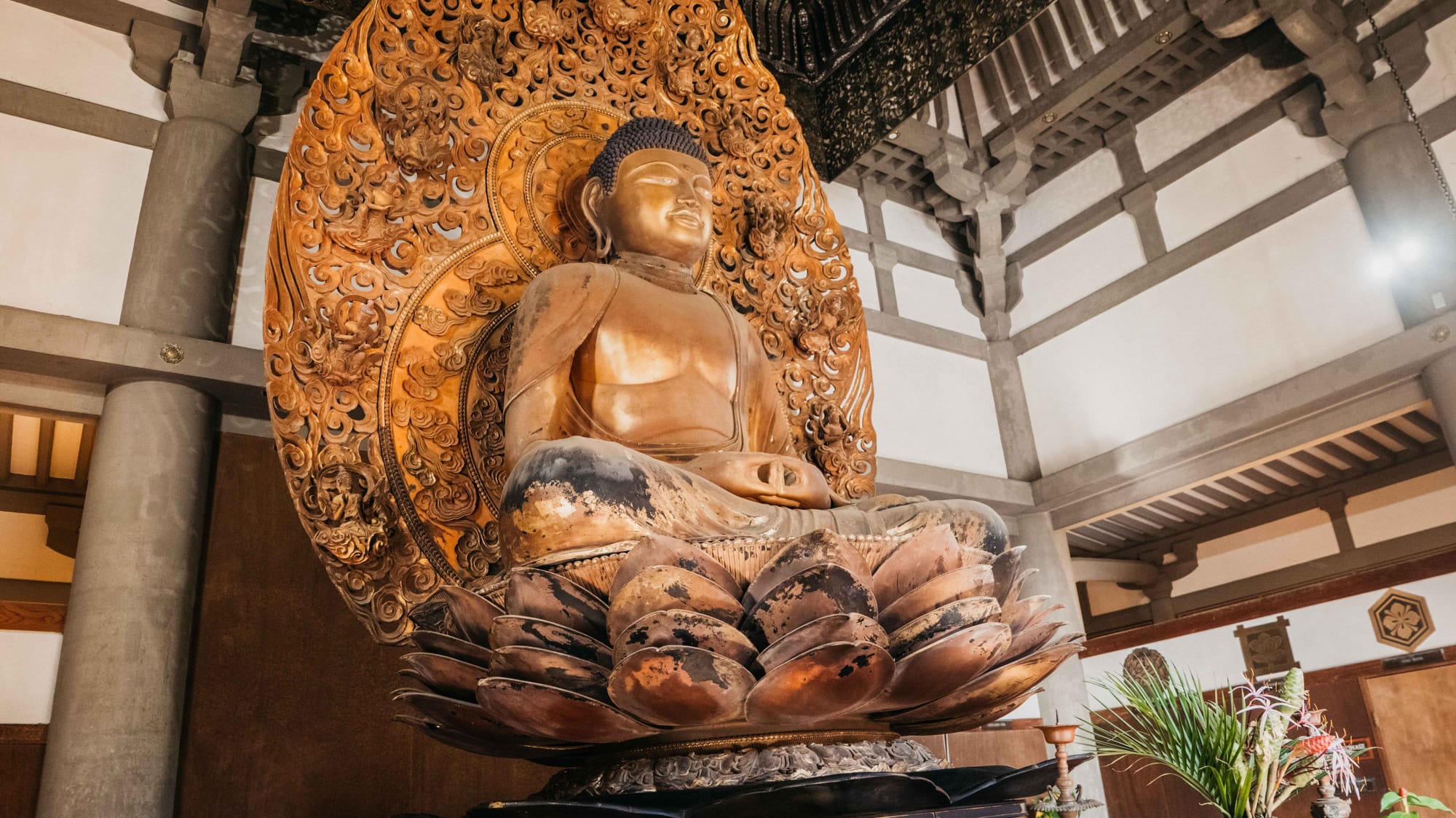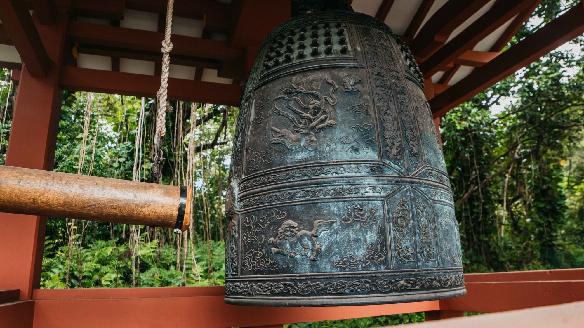 The temple also features a large three-ton brass bell, known as a bon-sho, which visitors are invited to ring before entering. The resonant sound of the bell is said to purify the mind and drive away evil spirits, setting a meditative tone for those who step inside.