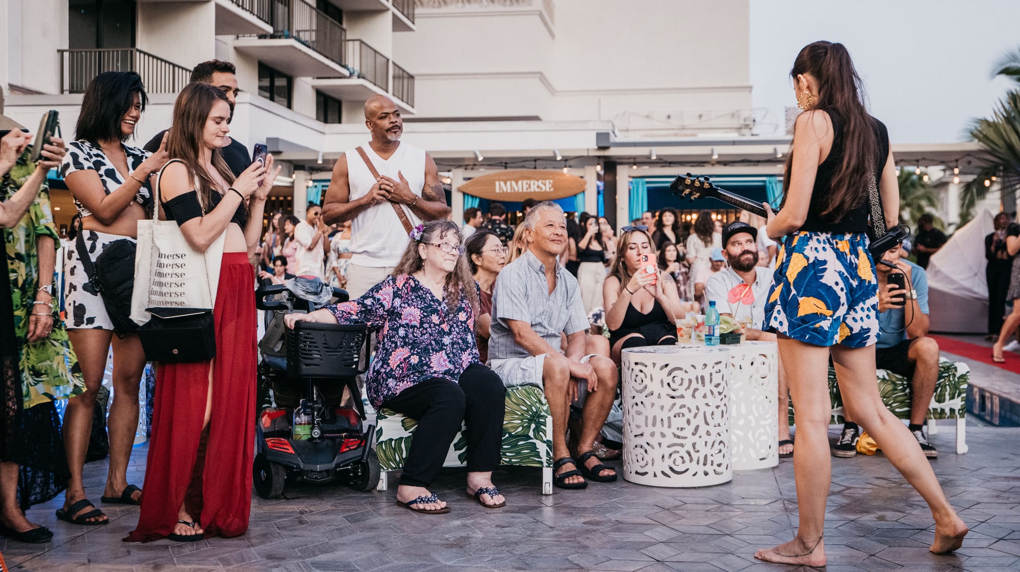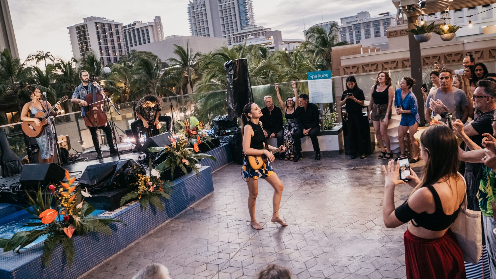 Adding to the magic of the evening, Taimane ventured off the stage, ukulele in hand, and wove through the crowd. This intimate interaction not only allowed her to connect more personally with her audience but also showcased her flair for performance art, turning the pool deck of the Beachcomber into a vibrant arena of musical celebration.